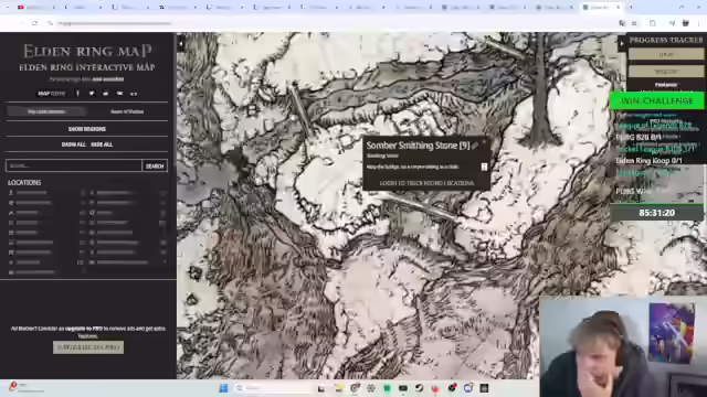 16:35:01Es wird festgestellt, dass die Waffe normale Schmiedesteine benötigt, was ein Problem darstellt, da sie hauptsächlich dunkle Schmiedesteine haben. Der Streamer ruft jemanden an, um nach Steinen zu fragen. Es wird vorgeschlagen, dass sie die Dungeons machen, in denen man die Klangperlen bekommt, um die Waffen zu verbessern. Es wird erwähnt, dass es auf dem Altus-Plateau normale Schmiedesteine gibt. Der Streamer soll eine Map Genie Seite öffnen, um die Fundorte der Steine zu finden. Es wird erklärt, wie man die Seite benutzt, um die Fundorte von Ancient Smithing Stones und anderen Materialien zu finden. Es wird betont, dass einige Gebiete noch nicht erreichbar sind. Der Streamer soll die einfachen Dungeons machen, um die Klangperlen zu holen und sich aufzuteilen, um schneller voranzukommen. Es wird überlegt, ob sie den Feuerriesen noch so töten können, da sie glauben, dass sie es mit Bleed schaffen können. Es wird betont, wie wichtig eine gute Vorbereitung ist, um in Elden Ring erfolgreich zu sein. Der Streamer soll eine mentale Basis schaffen, indem er kurz grindet und die Klangperlen holt. Es wird erklärt, wie der Blackknife Dagger funktioniert und dass er einen Debuff auf die Bossleiste legt. Max bereitet die Links vor und schickt sie dem Streamer.