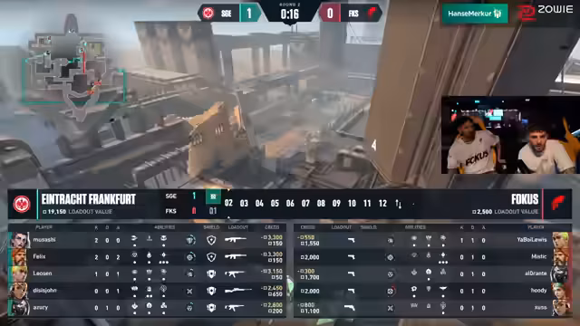 02:15:51Nach dem 2:0 Sieg von SGE über Fokus sind die Reisen gemischt. Während SGE begeistert ist, ist es bei Fokus ein schmerzhafter Moment, da sie verdient verloren haben. Fokus hat 13 Punkte und könnte sich theoretisch noch für Ascension qualifizieren, wenn sie hoffen, dass andere Teams bei den Challenger-Events punktemäßig patzen.