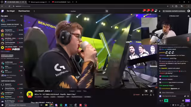 07:31:53Während des Streams treten wiederholt technische Probleme auf, wie eine defekte Maus oder ein leeres Headset, die das Spielerleiden behindern. Dies führt zu starker Frustration, besonders bei verlorenen Runden, bei denen er das eigene Team für die Niederlage verantwortlich macht und von 'stupiden' Gegnern spricht.