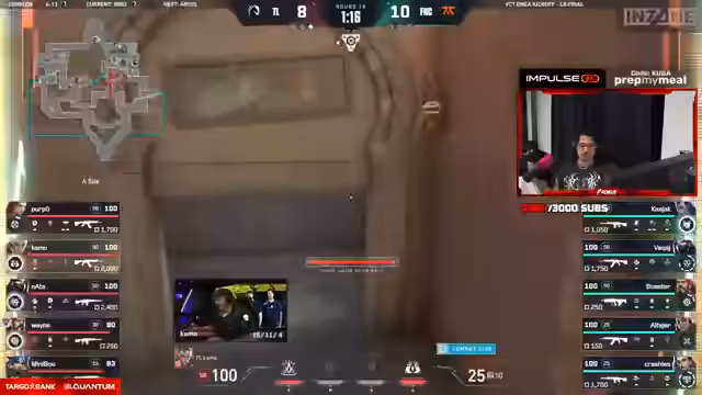 00:46:41Das Spiel zwischen Team Liquid und Fnatic wird als extrem spannend beschrieben. Es kommt zu mehreren knappen Runden und entscheidenden Clutch-Situationen. Der Streamer kommentiert das Geschehen live und hebt besondere Spielzüge hervor, wie den 'Nats-Faktor', bei dem Spieler Nats durch sein individuelles Spiel einzelne Runden und möglicherweise sogar ganze Maps für sein Team sichert. Das Spiel wechselt mehrfach die Seite und ist für den Streamer ein 'Grand Final Feeling'.