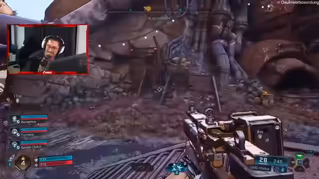 03:49:26Der Streamer kämpft gegen einen schwierigen Endboss in Borderlands, wobei er immer wieder mit Munitionsproblemen zu kämpfen hat. Trotzdem stellt er fest, dass das Spiel immer besser wird, je mehr Mobs er tötet. Der Streamer hat Schwierigkeiten, Schaden zu machen, und stellt fest, dass die Gegner immer schwieriger werden. Er muss überleben und Gegenstände einsammeln, um Missionen zu erfüllen, und nutzt Level-ups, um Fähigkeiten zu verbessern. Das Gameplay erfordert strategisches Vorgehen und gute Koordination mit den anderen Spielern.