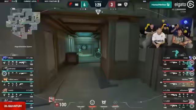 02:07:41Nach den technischen Pausen geht das eigentliche Spiel im Grand Final los. Auf der Map Lotus beginnen Fokus und CGN ihre Kämpfe. Fokus startet mit einer klassischen Viper-Wall auf B-Position. Spieler wie Kayon agieren als Köder, um ein Flashplay vorzubereiten. Luis von Fokus zeigt in der ersten Runde bereits starke individuelle Leistung mit einem schwierigen Kill in einem 3-gegen-2-Situation. Die ersten Runden sind geprägt von taktischem Setup, guten Flash-Plays und einem frühen Duell der Star-Spieler.
