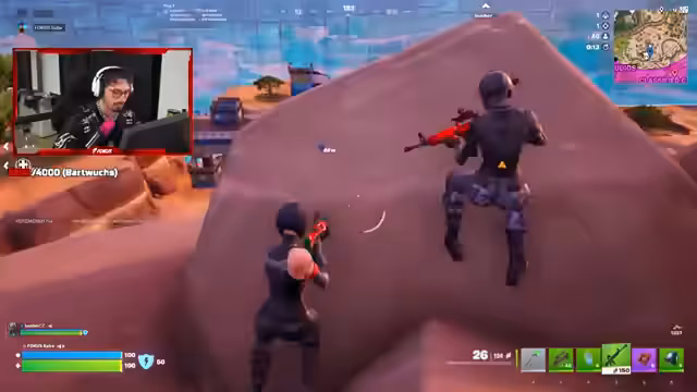 02:53:11Im Endgame halten sich die verbleibenden Spieler in Bunkern und auf Hochgrund. Nachdem der Streamer mehrere Gegner ausschalten konnte, bleibt nur einer übrig. Jedoch wird der Teamkamerath durch einen Fehler eliminiert und der Sieg geht knapp verloren. Die Taktik des 'Bunkerns' war im Grunde erfolgreich, aber der letzte entscheidende Moment wurde nicht genutzt.