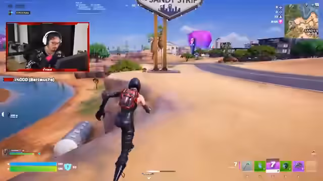 00:02:55Nach der Lobbyphase startet das erste Spiel des Cups. Der Streamer landet gemeinsam mit seinem Partner Butcher an der Tanke. Der Dropvorgang verläuft nicht geplant, da Gegner direkt in der Nähe landen und der Streamer durch einen frühen Tod das Spiel beendet muss. Besonderen Fokus legt er auf die korrekte Nutzung der Tastenbelegung für Aktionen wie das Rebooten und das Benutzen von Items, was im weiteren Verlauf ein wiederkehrendes Thema wird.