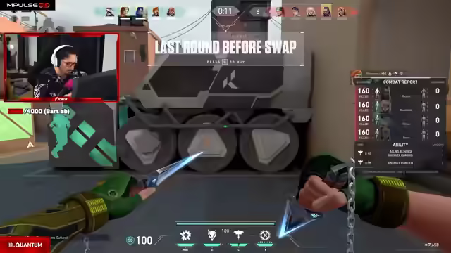 Die Spieler starten in VALORANT und treffen auf einen neuen Champion, dessen Teleport- oder Flash-ähnliche Attacken für Verwirrung sorgen. Während sie die Mechaniken ergründen, verlieren sie die erste Runde und spekulieren über die Überlegenheit des Champions, der sich nach jedem Kill vollständig heilt. Die Teamkollegen haben Schwierigkeiten bei der Zusammenarbeit, was zu weiteren Niederlagen führt. Die Diskussion über Fähigkeiten und Spielstrategie prägt die Anfangsphase.