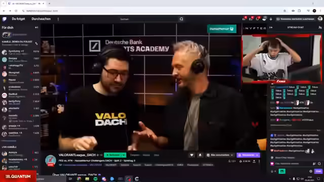 01:38:19Das Match geht in die letzte Map auf Haven, der Stand ist 1-1. Der Kommentator betont die konstant starke Leistung von Fokus, insbesondere Spieler Xass, der mit seinem aggressiven Entry-Play für viele früh Siege sorgt. Der Aufruf an den Chat ist klar: Vollgas geben, um das Team nach vorne zu treiben und den entscheidenden Lachs, also den Map-Punkt, zu holen.