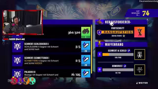 01:12:15Es wird über die Länge des Katana in der Hand gesprochen und dass Tolkien mit dem Chat gewandt wird. Es wird erzählt, dass es letztens mit Max und Co ein anderes Game gab, wo bei einer Werbung keine Wärme-Kennzeichnung gemacht wurde und Max abgemahnt wurde, weil es in seinem Chat zu sehen war. Es wird überlegt, ob leicht plus für den nächsten Durchgang zu haben ist und sich für das Krachen der Verderben entschieden. Tolkien wird eingeladen, da er den Streamer "geshit-talkt" haben soll. Es stellt sich heraus, dass Tolkien bei Kuba zu Hause wohnt und sie ab morgen eine Woche lollern werden. Danach will der Streamer ein Comeback von Tolkien im 1 gegen 1 auf der Toplane sehen. Sie wollen zu dritt 171 Champs spielen und jedes Game gewinnen. Es wird überlegt, das Mike abzunehmen, aber Tolkien bleibt. Es wird überlegt, dass man die Pester nehmen soll, da dann Leben droppt.