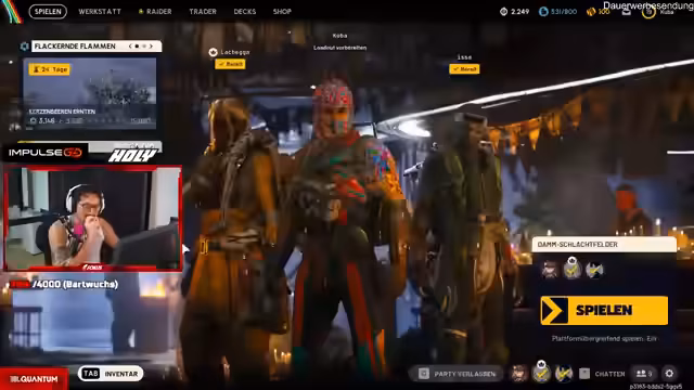 07:31:59Der Stream startet mit PvP-Gameplay. Kubafps diskutiert mit seinem Team Taktiken für den Rundstart, lobt einen beeindruckenden One-Shot-Kill und bespricht die Wahl der Map. Dabei geht es um Winter-Event-Inhalte und die Optimierung der Ausrüstung für kommende Kämpfe.
