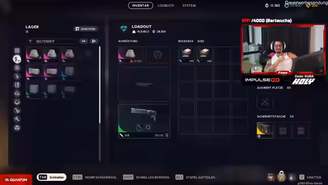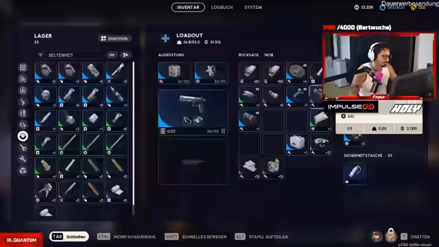 05:44:19Nach einer erfolgreichen Plünderungstour ist der Inventar des Streamers völlig voll. Er hat seltene und wertvolle Gegenstände wie eine Arc-Sonde gefunden, kann sie aber nicht öffnen, da er keinen Platz mehr hat. Bei der anschließenden Flucht stellt er fest, dass er in einem Raum, in dem ein Gegner lauern könnte, festsitzt. Er muss sich entscheiden, wertvolle Ressourcen zu opfern, um Platz für das Ausplündern zu schaffen, oder den Ort schnell zu verlassen. Nachdem er sich durchgekämpft hat, gelingt es ihm und seinem Teammitglied, sicher zu entkommen.