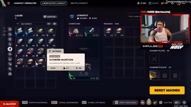 02:26:34In dieser Phase diskutiert der Spieler intensiv die optimale Ausrüstung für PvP-Engagements. Er erklärt die Bedeutung blauer Schilde im Vergleich zu grünen, da blaue Schilde 43% mehr Schadensreduktion auf das Leben bieten und somit effektiv wie ein doppeltes Schutzschild wirken. Dabei geht es um die Auswahl von Augmenten wie Looting-Mods und die Mitnahme von spezifischen Waffen wie dem 'Bandos'-Gewehr. Diskutiert wird auch die Munitionstypenverteilung - leichte Munition für bestimmte Waffen und die Notwendigkeit, bei blauen Schilden andere Augmente zu spielen. Der Spieler betont die Wichtigkeit von Ressourcenmanagement und plant konkrete Loadouts mit mehreren Item-Slots.