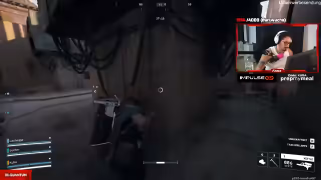 06:15:49Beim Einrichten für eine neue Runde stellt der Streamer fest, dass er versehentlich auf einem europäischen Server spielt, obwohl er den amerikanischen bevorzugt. Er plant, zukünftige Runden solo zu spielen, um sich zu verbessern, aber auch Kooperations-Runden in Betracht zu ziehen. Beim Plündern eines Raumes eliminieren er und sein Teammitglied einen Gegner, ohne einen einzigen Schuss abgefeuert. Der Streamer beschwert sich über die Taktik, Gegner mit Nades zu eliminieren, und bereitet sich auf die nächste Aktion vor.