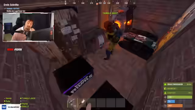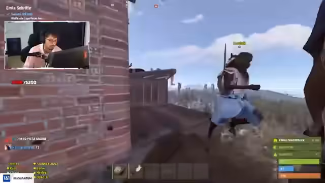 14:44:22Das Rust-Projekt von Zabex und Monte startet in fünf Tagen. Der Streamer ist Teil von Team Eli, zusammen mit Willi und Fabo. Es gab eine Diskussion darüber, wie man legal an das Spiel Rust kommt, da es auf Steam 40 Euro kostet, aber wohl auch günstiger im Angebot erhältlich ist. Der Streamer bittet um eine Sekunde, um wach zu werden und sich zu sammeln. Es wird überlegt, wer die Coms recyceln geht und ob man das in der Gruppe machen soll. Der Streamer will erstmal farmen gehen und die Lage checken. Es wird erwähnt, dass sich die Lage beruhigt hat und es chillig ist. Der Streamer gibt Anweisungen, auf einen bestimmten Spieler im Spiel zu achten und warnt vor einem Pusher. Es wird überlegt, wer Sulfur in den Furnace packen kann, um Bullets zu craften. Der Streamer schätzt, dass er etwa 10 Klimmzüge schafft und spricht über Muscle-ups. Er erwähnt, dass er dünn ist und deswegen Klimmzüge leicht fallen. Abschließend bedankt er sich für den Support und die Primes und kündigt an, dass er etwas Ruhe braucht, um bis 14 Uhr wach zu bleiben.