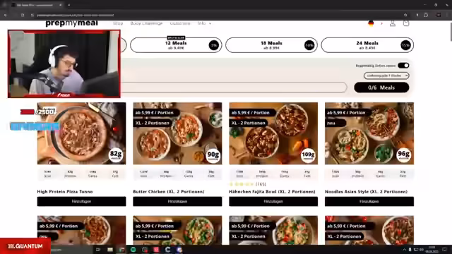 01:42:54Nach einer kurzen Pause wird eine neue Partnerschaft mit PrepMyMeal angekündigt. Der Streamer preist das tiefgekühlte, gesunde Essen als absoluten Gamechanger für seinen Alltag, da er weder Zeit noch Lust zum Kochen habe. Er betont, dass die Gerichte frei von Zusatzstoffen und zugesetztem Zucker seien und sehr schmeckten. Zuschauer können über einen speziellen Link mit dem Code Kuba 5% Rabatt erhalten. Es werden verschiedene Boxen und Kategorien wie Low-Carb, Keto oder Veggie vorgestellt, um gesunde und zeitsparende Ernährungsoptionen anzubieten.