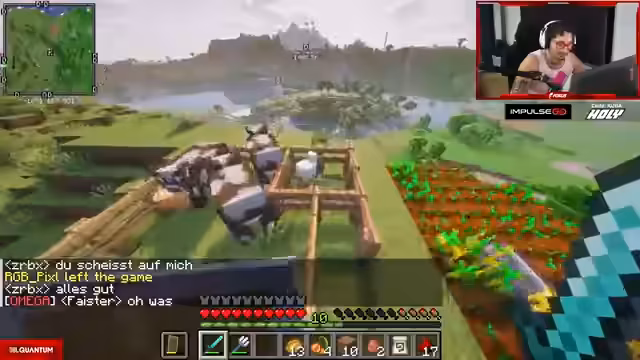 00:01:52Der Streamer plant den Bau einer kleinen Farm, um zukünftig unabhängig von anderen Spielern Nahrung zu beschaffen, da frühere Konflikte um Essen entstanden sind. Er benötigt Zäune und eine Axt, die er sich noch craften muss. Dabei stellt er fest, dass jemand in seine Villa eingebrochen ist und obszöne Zeichnungen hinterlassen hat, was ihn verärgert. Er erwähnt auch einen Vorfall mit Merle, deren Pferd er angeblich ausgeliehen und verloren hat, was zu einer wütenden Sprachnachricht von ihr führte. Dies motiviert ihn zusätzlich, eine eigene Farm zu errichten, um solche Probleme in Zukunft zu vermeiden und den Stress auf dem Server zu reduzieren.