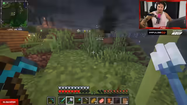 02:13:07Der Streamer trifft Earlyboy, der ihn besucht, um ihm einen schönen Tag zu wünschen und sich nach seinem Fortschritt zu erkundigen. Earlyboy fragt, ob er zwei Leinen ausleihen könnte, um Babys mit Schafen zu machen, da er selbst keine hat. Der Streamer, der bereits viele Schafe geschlachtet hat, zeigt sich großzügig und erlaubt Earlyboy, die Leinen mitzunehmen. Es wird auch über das Craften von Leinen gesprochen und der Streamer erfährt, dass Earlyboy ein erfahrener Minecraft-Spieler ist, der seit 2011 spielt und schätzungsweise 30.000 Spielstunden hat. Die Interaktion ist freundlich und hilfsbereit, wobei Earlyboy seine Dankbarkeit für die Unterstützung ausdrückt.
