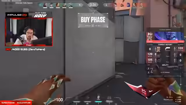 02:52:49Während des Spiels gibt es ein ständiges, dynamisches Geschehen. Der Streamer gibt laute und unmittelbare Anweisungen an sein Team, wie zum Beispiel 'go fast A' oder 'go B now'. Es kommt zu intensiven Momenten, in denen er kritische Entscheidungen trifft, wie etwa das Flashen durch eine Rauchwand, um einen Vorteil zu erlangen oder um einen Gegner auszuschalten.