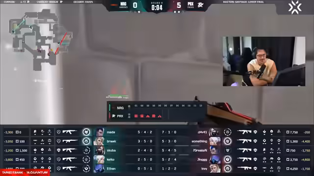 00:17:04Der Streamer beginnt, ein professionelles Valorant-Match der Champions zu schauen, genauer gesagt das Lower Bracket Finale zwischen PaperX und NRG. Er analysiert das Spiel intensiv, kommentiert die Taktiken, die Spielzüge und die Performance der einzelnen Spieler. Er zeigt sich beeindruckt von der Qualität des Spiels, insbesondere von Spielern wie Forsaken und Kiko. Der Streamer gibt seinen Zuschauern Einblicke in strategische Entscheidungen wie Fake-Peeks, das Setzen von Smokes und die Nutzung von Ultimates und demonstriert dabei ein tiefes Verständnis für das Spiel.