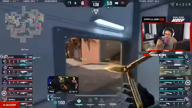 00:49:50Der Streamer leitet die Übertragung eines VCT-Matches zwischen Team Liquid und Fnatic ein. Er analysiert die Map-Picks wie Haven, Ascent und Split und stellt fest, dass beide Teams historisch auf diesen Maps stark sind. Er vergleicht die Spielstile und identifiziert Liquid als disziplinierter und weniger fehleranfällig, während Fnatic von emotionaler Wut und guter Synergie abhängt. Er zeigt sich beeindruckt von AlphaOmega, dem jungen Spieler von Fnatic.