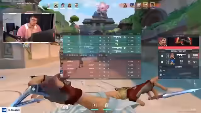 09:40:22Nach einer Partie Valorant wechselt der Streamer zu dem Spiel Fragpunk. Er erkundert das neue Spiel mit seinen Zuschauern und Freunden, testet verschiedene Agenten und Waffen. Dabei stellt er die Mechaniken wie seitliches Springen, das Heilen von Teammitgliedern und das zufällige Auswählen von Karten für jede Runde vor und interagiert intensiv mit seinem Team.