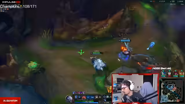 02:15:39Im Spiel wählt der Streamer den reworked Tarek. Er versucht dessen neue ULZ-Kombi und zeigt einen kennen gelernten Play: Ein guter E-Kragas-Q bricht den gegnerischen Lee Sin, gefolgt von Flash, Ult, Q für den Kill. Er macht jedoch Fehler bei der Verbindung seiner Fähigkeiten und erkennt zu spät, wie der Stun funktioniert.