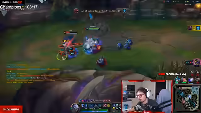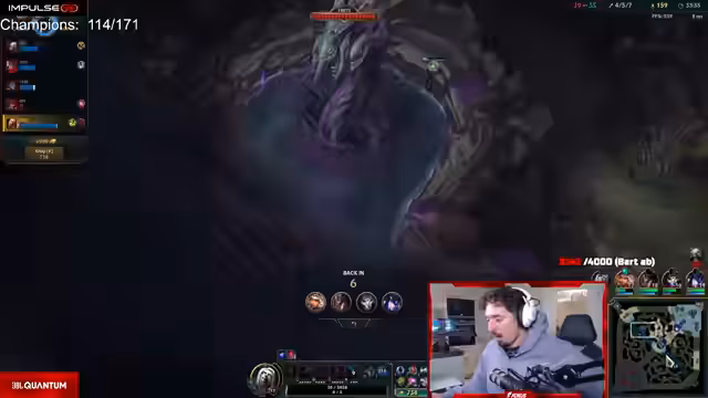 14:22:33Im weiteren Verlauf des Spieles macht der Streamer taktische Fehler, indem er zu früh auf den gegnerischen Jax zugreift, ohne dessen Cooldowns zu kennen, und stirbt. Nach einem weiteren geführten Fight am Dragon wird die gegnerische Diana gestoppt. Die Bot-Lane verliert jedoch stark, was den Druck auf das Team erhöht.