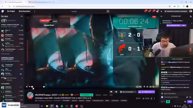 00:01:08Der Stream beginnt mit einer Begrüßung des Chats und einem direkten Einstieg in eine Fokus-Watch-Party. Es geht sofort um ein wichtiges Playoff-Match des deutschen Teams Fokus gegen Eternal Fire. Der Kommentator hebt die Bedeutung des Spiels für die Playoffs hervor und fordert die Zuschauer auf, die Fokus-Emojis im Chat zu nutzen, um das Team zu unterstützen. Es wird erwähnt, dass Fokus in einem internationalen Challenger-Turnier um den Aufstieg kämpft.