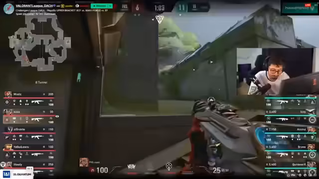 01:40:35Eine besonders umkämpfte Runde steht im Mittelpunkt des Streams. Fokus muss einen Retake auf A-Platz durchführen. Der Kommentator beschreibt das spannungsgeladene Geschehen im Detail: wie die Spieler der Fokus-Mannschaft sich positionieren, welche Fähigkeiten sie einsetzen und wie knapp das Ergebnis ist. Am Ende schafft es Fokus, die Runde für sich zu entscheiden, was der Kommentator als 'gelenkt' und 'sehr geil' bezeichnet.
