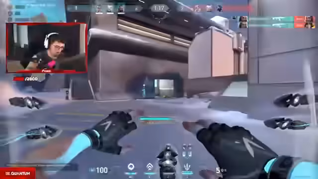 05:02:01Zu Beginn der Sequenz werden diverse taktische Entscheidungen besprochen. Es wird ein geplanter Angriff auf verschiedene Punkte wie Garage, Mitte und A angekündigt, wobei der Fokus auf einer kurzen Pause und dem Peeking auf Cypher liegt. Beim anschließenden Angriff auf B wird der Gegner Phoenix gesichtet, der sich im Backside aufhält. Ein entscheidender Fehler wird durch einen gegnerischen Dash ausgelöst, der zu einem kritischen und verlorenen Duell führt, was den Streamer sehr frustriert.