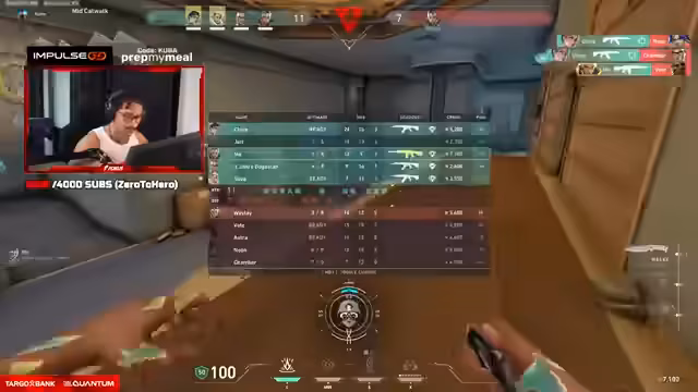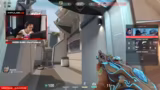 03:35:33Das Spiel wechselt zur Map Bind. Der Streamer, mit einem 'Brimstone', plant eine aggressive 'Push'-Aktion auf die A-Seite. Nach einer guten 'Smoke'-Abdeckung für seinen Teamkollegen gelingt es, den Gegner unter Druck zu setzen und zwei Gegner zu eliminieren. Trotzdem bleibt der Ausgang der Runde unklar, da der Gegner noch eine ultimative Fähigkeit zur Verfügung hat und eine Wiederauferstehung droht.