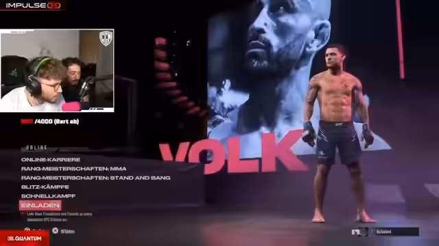 03:36:07Nach dem Ausscheiden aus dem Fall Guys-Turnier richtet sich der Fokus plötzlich auf ein aufkommendes UFC-Spiel. Der Streamer und sein Partner Chef Strobel sind überrascht weit gekommen und haben die Chance auf ein Preisgeld. Da sie das Spiel noch nie gespielt haben, müssen sie sich unter hohem Zeitdruck die Grundlagen aneignen. Sie brauchen schnelle Tipps und einen Spiel-Code, um überhaupt antreten zu können. Trotz der chaotischen Vorbereitung herrscht hohe Motivation und der feste Glaube, dass sie gewinnen und das Preisgeld mitnehmen werden.