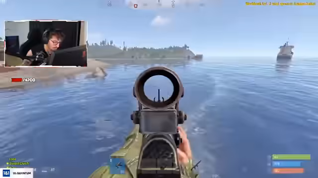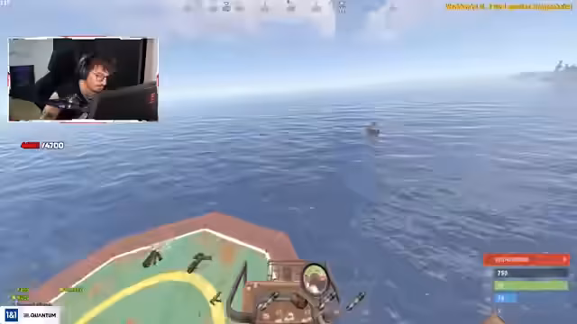 04:43:04Ein feindliches Schnellboot nähert sich der Position des Streamer-Teams, woraufhin ein Kampf entbrennt. Der Gegner im Boot besitzt Full-T3-Armor und eine sehr starke Waffe, die aus großer Entfernung bedrohlich ist. Das Team beschließt, das Boot anzugreifen, verfehlt aber. Der Gegner flieht, und das Team diskutiert über den Verbleib des Gegners, der möglicherweise getaucht ist. Es wird nach Loot gesucht, während die Kämpfe auf der Oil-Rig weitergehen.