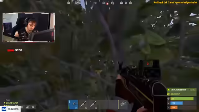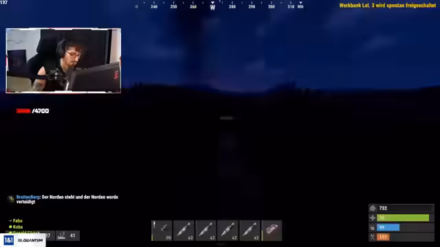 04:33:06Das Team spricht über vergangene Kämpfe und die erbeutete Ausrüstung. Es wird erwähnt, dass sie zuvor auf einem Cargo-Schiff gegen drei andere Teams gekämpft haben und dabei erfolgreich waren. Ein Treffen am P22 oder Mining Outpost wird vorgeschlagen, um das Team neu zu formieren. Chef Strobel wird vermisst, da er ein LoL-Quiz veranstaltet. Es wird gescherzt, dass er stattdessen auf der Gästetoilette ist. Die Spieler tauschen sich über die Menge an benötigtem Loot aus. Dalu entdeckt einen Ballon in der Nähe der Basis und einen Wolf, den er gerne erlegen würde. Es wird die Frage aufgeworfen, ob genügend Treibstoff vorhanden ist, um den Ballon zu transportieren. Die Gruppe diskutiert über Flugmanöver mit dem Helikopter, inklusive Loopings, und die damit verbundenen Risiken. Sie landen am Hafen in der Nähe von P22, um ein Team zu bilden. Es stellt sich heraus, dass der Helikopter beschädigt ist. Fabo wird aufgefordert, aufzusteigen, was zu humorvollen Diskussionen führt. Ein Sturzflug wird in Erwägung gezogen, wobei Fabo vorher aus dem Helikopter springen soll. Die Gruppe nähert sich Chef Strobels Haus und stellt fest, dass es von Scientists bewacht wird.