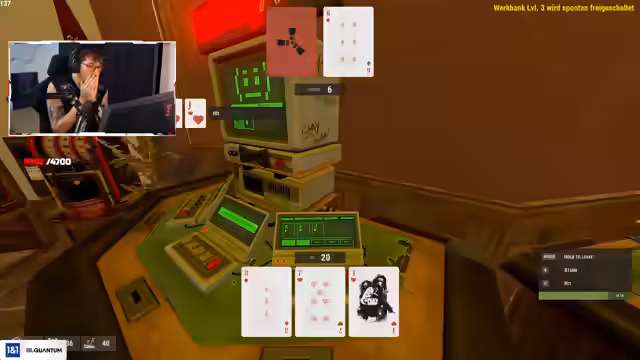 02:33:18Der Streamer entscheidet sich für einen Besuch im Cargo-Schiff, nachdem er zuvor im Casino erfolgreich war und sich mit viel Metall eingedeckt hat. Auf dem Schiff treffen er und sein Team auf feindliche Spieler, darunter Merle, die ihre Base verraten hat. Es kommt zu ersten Scharmützeln und verbalen Auseinandersetzungen. Der Streamer und seine Kameraden planen, den Frachtraum auszurauben, müssen aber vorsichtig sein, da Gegner patrouillieren und sie vom Schiff abwerfen könnten. Die Atmosphäre ist angespannt und auf einen Kampf vorbereitet.