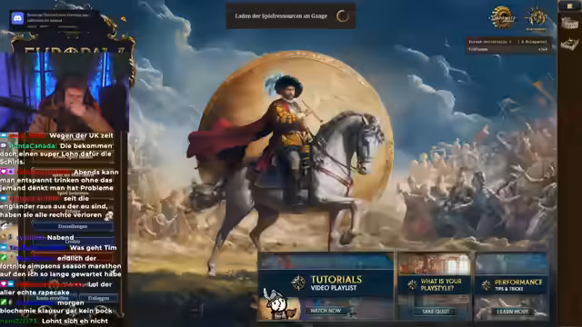 00:10:01Der Streamer startet das komplexe Strategiespiel Europa Universalis 5 und zeigt sich überrascht, dass er es nicht kennt, obwohl er es selbst gekauft hat. Er fragt die Zuschauer, welches Land zuerst kolonisiert werden soll, und stellt fest, dass es ungewöhnlich ist, ein solches Spiel zu streamen, nur weil man Lust darauf hat. Nach dem Laden des Spiels, bei dem er bemerkt, dass es keinen Spielstand gibt, da es ein neues Spiel ist, sieht er die Karte Europas. Er überlegt, Braunschweig zu spielen, da er in früheren Spielen immer mit Braunschweig begonnen hat. Er hat Schwierigkeiten, die Grenzen auf der Karte zu erkennen und entscheidet sich schließlich für Braunschweig, mit Herzog Otto dem Milden als Herrscher. Er wählt die 'Iron Man'-Option, um Erfolge freizuschalten, muss aber feststellen, dass dies bei leichter Schwierigkeit nicht möglich ist. Er entscheidet sich für historische KI-Entscheidungen und verbietet Landesänderungen. Er aktiviert Missionsbelohnungen und Hauptbuchinformationen. Das Spiel startet im Jahr 1337. Er beschreibt die Spielmechaniken, die ihm aus Hearts of Iron 4 bekannt sind, wie die 'Pops' (Bevölkerungsgruppen nach Gesellschaft, Religion und Kultur) und Warenmärkte. Er äußert seine Abneigung gegen diese Art von Mechaniken und erwähnt, dass er die Stände in Hearts of Iron 4 schon nicht mochte. Er geht die empfohlenen Aktionen durch, wie die Aufrechterhaltung von Stabilität und Legitimität, und schaut sich die verfügbaren Reformen und Kabinettsaktionen an. Er stellt fest, dass er keine Regierungsform wählen kann und alleine herrschen wird. Er untersucht die Forschungsmöglichkeiten und wählt 'Organisierte Religion' als erstes Forschungsprojekt, obwohl er nicht ganz versteht, warum er nicht weiter scrollen kann.