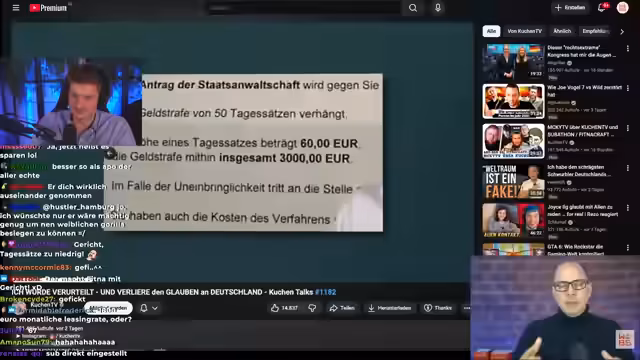 02:48:50Der Sprecher kritisiert Tobias Huch scharf dafür, dass er Geld von Zuschauern für Anwaltskosten sammelt, nachdem er selbst jahrelang hohe Rechtskosten trug, ohne Spenden anzunehmen. Er wirft Huch vor, in einer finanziellen Ausnahmesituation unverhältnismäßig zu handeln, und stellt die Frage, ob nicht stattdessen soziale Projekte mit dem Geld unterstützt werden sollten. Besonders kritisiert wird, dass Huch selbst bei Kleinigkeiten Anwaltskosten verursacht.
