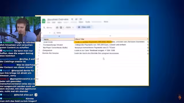 00:35:00Mithilfe eines Undercover-Whistleblowers namens Claudio deckt Robbubble auf, wie die 'Oasis Agency' für Influencerinnen schreibt. Attraktive Frauen wie Alexis SAV (150k Follower) verkaufen Chats für 20€ monatlich, lassen aber bezahlte Agenturmitarbeiter das 'Girlfriend-Feeling' vortäuschen. KuchenTV verurteilt dies als gewerbsmäßigen Betrug, bei dem parasoziale Bindungen ausgenutzt werden, um Fans zu hohen Ausgaben zu drängen. Betroffene Influencerinnen löschen kritische Kommentare und zeigen keine Reue.