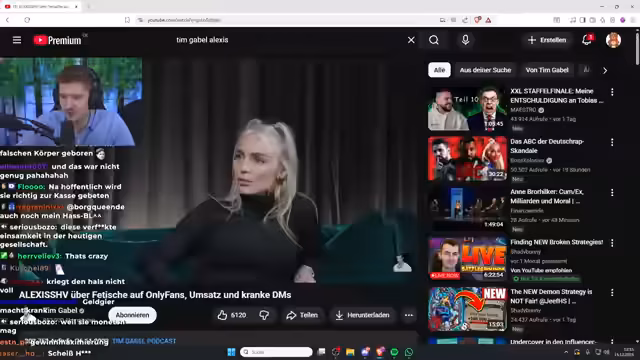 00:40:00Der Streamer verdeutlicht die Dimension der finanziellen Ausbeutung: Ein 22-jähriger Fan soll Alexis SAV sein komplettes Monatsgehalt (1.600€) für Chats gezahlt haben – obwohl sie selbst laut eigener Aussage bereits 70.000-100.000€ monatlich verdient. KuchenTV fordert juristische Konsequenzen für alle Beteiligten und betont, dass dies nicht mit Onlyfans vergleichbar sei, da hier bewusst mit Privatheit geworben und getäuscht werde. Er verurteilt das Verhalten als moralisch verwerflich und kündigt an, weiterhin auf das Thema aufmerksam zu machen.