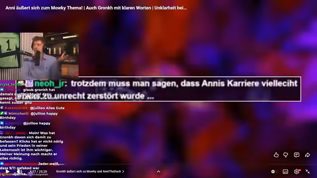 00:34:41Der Streamer wechselt das Thema und reagiert auf neue Entwicklungen im sogenannten 'Anki-Drama'. Er beginnt mit der Analyse von Gronkhs jüngstem Statement dazu, das dieser während eines Geburtstagsstreams abgab. Gronkh positionierte sich als nicht involviert und bezeichnete die Angelegenheit als 'Klatsch und Tratsch'.