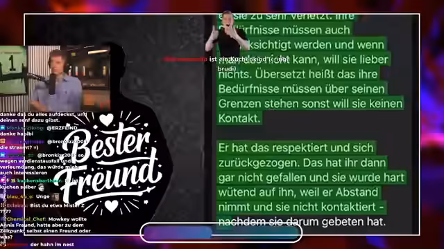 01:22:02Der Streamer spricht über seine langjährigen gesundheitlichen Probleme, insbesondere chronische Kopfschmerzen, die ihn seit Kindesjagen plagten und ihn dazu veranlassten, täglich Schmerzmittel einzunehmen. Nachdem alle bisherigen Arztbesuche keine klare Diagnose ergaben, wurde vor einigen Wochen eine Schwermetallvergiftung festgestellt, die auf einen Gendefekt zurückzuführen ist. Nach seiner ersten Dialyse, einer Blutwäsche, berichtet er von einer signifikanten Besserung: Für mehrere Wochen hatte er keine Kopfschmerzen mehr und wurde emotional, als er dies realisierte. Sein Arzt rät ihm zu einer strengen Diät, um die Mangelernährung zu bekämpfen, die durch die Unverträglichkeit vieler Nahrungsmittel entsteht. Er äußerte die Hoffnung, durch diesen Schritt endlich von den Schmerzen befreit zu sein.