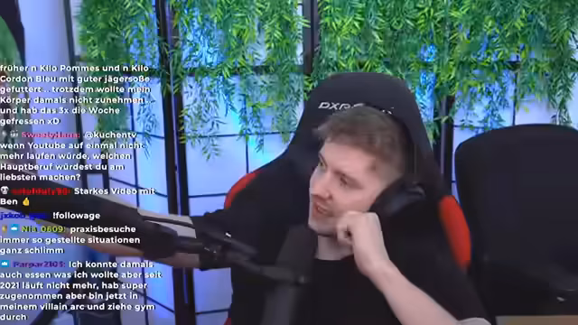 00:08:55Der Streamer berichtet von seinem persönlichen Alltag, der seit neuestem vom Fitness geprägt ist. Nach anfänglichen Schwierigkeiten mit starkem Muskelkater nach dem ersten Beintraining ist er nun motiviert durchzuziehen. Er erzählt von seiner Erfahrung mit Lachgas beim Zahnarzt, das ihn verpeilt machte, und davon, dass er dennoch zum Sport ging. Er findet abends das Training angenehmer als morgens, was mit der Betreuung seines Sohnes Noah zusammenhängt. Sein Ziel ist es, Muskeln aufzubauen, während er mit seinem aktuellen Gewicht zufrieden ist.