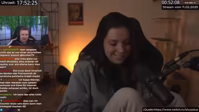 02:01:50Monte zieht einen Schlussstrich unter das Thema Carina Pusch und erklärt, dass ihre Handlungen ihre eigene Sache seien. Er wünscht ihr Glück mit einem verurteilten Volksverhetzer und Drachenhatern und hofft auf ein weiteres Fanfoto mit von der Leyen. Er erwähnt, dass Carina Pusch ihm zunächst erklärt habe, sie wolle mit ihm gemeinsam Videos gegen KuchenTV machen, um ihn aufzuhalten, bevor sie ihre Meinung änderte. Monte kritisiert Carina Pusch dafür, dass sie KuchenTV, der viele misogyne Videos gegen andere Frauen gemacht habe, Material gebe, um misogyne Videos gegen ihn zu machen. Er verteidigt seinen Humor und kritisiert, dass man heutzutage schnell als misogyn, ableistisch oder ähnliches abgestempelt werde. Er sei froh, Jakob Rätsel kennengelernt zu haben, der ihm gezeigt habe, dass er auf Kritik scheißen und seine Witze machen solle. Er betont, dass er lieber real sei und Dinge raushaue, worüber er lache, auch wenn das für einige misogyn sei. Monte betont, dass er im Kern linke Punkte vertrete, auch wenn Shurjoka das nicht wahrhaben wolle.