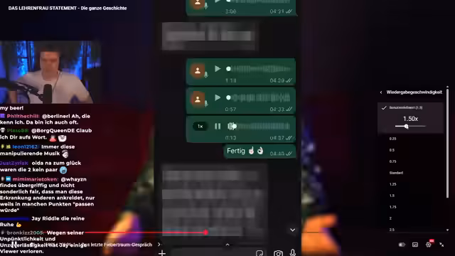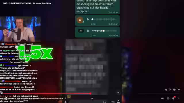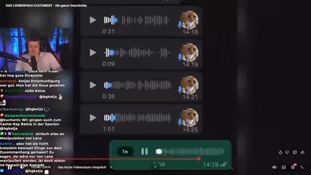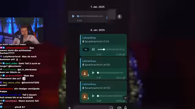 00:48:54Die Eskalation der Ereignisse begann, nachdem Lehrenfrau aktiv den Kontakt zu Jakob suchte, um ihm bei seinem TikTok-Account zu helfen. Sie bot an, Pläne für gemeinsamen Content zu erstellen und nutzte ihre Erfahrung in sozialen Medien. Nach anfänglichem Online-Kontakt trafen sie sich persönlich zu einem Mittagessen, welches Jakob als normales Treffen empfand. Der Kontakt über Instagram und WhatsApp setzte sich normal fort. Jakob erwähnt, dass er zu diesem Zeitpunkt bereits einige Bedenken bezüglich Lehrenfraus Verhalten hatte, aber die größeren Konflikte erst später auftraten. Er äußert sich kritisch über die Möglichkeit eines gemeinsamen Streams mit Lehrenfrau, da er ihr keine Plattform geben möchte, um ihre manipulativen Verhaltensweisen fortzusetzen. Er betont, dass Lehrenfrau nichts einsieht und er keinen Mehrwert in einem solchen Gespräch sieht, da es Jakob nur erneut belasten würde. Jakob berichtet, dass Lehrenfrau mehreren Personen, darunter Jasnero, erzählte, sie habe sich bei ihrem ersten Treffen gedemütigt gefühlt, weil er ihr seinen echten Namen nicht verraten wollte. Jakob erklärt, dass er vorsichtig mit seiner Identität ist und ihm von anderen Creatorn geraten wurde, bei Lehrenfrau vorsichtig zu sein. Er bat sie, ihn weiterhin Jakob zu nennen, da dies sein gängiger Spitzname ist.