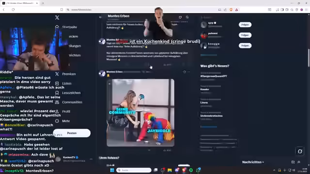 00:12:11Der Streamer äußert scharfe Kritik an Lehrenfrau und ihrem Verhalten im Zusammenhang mit dem Video von Jakob Rätsel. Er berichtet, dass Lehrenfrau versucht hat, Jakob dazu zu bringen, bestimmte Inhalte aus dem Video zu entfernen oder zu ändern, obwohl sie zuvor in einem TikTok-Statement erklärt hatte, Jakob solle selbst entscheiden, was er veröffentlichen möchte. Dieses Verhalten wird als heuchlerisch und manipulativ dargestellt, da sie angeblich nichts aus ihren Fehlern gelernt hat. Insbesondere wird die Geschichte kritisiert, in der Lehrenfrau trotz Jakobs Zeitmangel einfach in seine Stadt gefahren ist und dann sauer war, dass er keine Zeit für sie hatte. Der Streamer bezeichnet dieses Verhalten als ekelhaft und als Versuch, Jakobs Karriere zu zerstören.