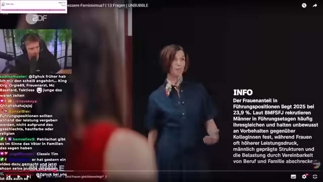 01:58:55Es beginnt eine Diskussion über den geringen Frauenanteil in Führungspositionen, wobei auf statistische Daten verwiesen wird. Ein wesentlicher Punkt ist, dass Frauen aufgrund von Mutterschaft und den damit verbundenen beruflichen Auszeiten oft benachteiligt sind. Es wird hinterfragt, warum Führungspositionen überhaupt erstrebenswert sein sollten, wenn es auch andere Lebensmodelle gibt. Die Gesprächsteilnehmer thematisieren die gesellschaftliche Entwicklung der letzten Jahrzehnte, in der Frauen zunehmend Bildungschancen wahrnehmen und sich beruflich verwirklichen, was sich zukünftig positiv auf den Frauenanteil in Führungspositionen auswirken könnte. Der Begriff 'Treadwife' wird eingeführt, wobei eine Gesprächsteilnehmerin betont, dass sie Tradition und Moderne verbindet und ihren Partner unterstützt, ohne sich auf ein traditionelles Rollenbild festzulegen. Es wird hervorgehoben, dass Feminismus die Selbstbestimmung der Frau bedeutet, unabhängig davon, ob sie Karriere machen oder konservative Werte leben möchte. Die Diskussionsteilnehmer sind sich einig, dass beide Lebensentwürfe legitim sind und jede Frau selbst entscheiden soll, was sie glücklich macht.
