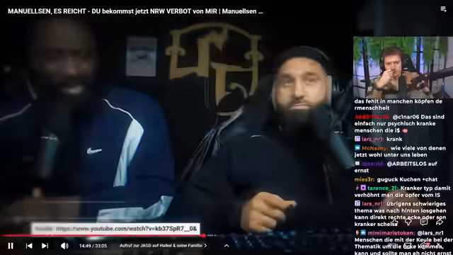 00:31:37Der Streamer plant, auf ein Jules-Video zu reagieren, hofft aber, dass Jules die 50% der Einnahmen, die er für Reaktionen fordert, nicht einfordert, da er ihn einmal verteidigt hat. Er bemerkt, dass es eine Reactions-Sperre für Jules-Videos gibt und bricht die Reaktion ab, um sie später zu zeigen. Stattdessen reagiert er auf ein Video von Justin Nero über die Manuelsen-Thematik rund um Heikel. Er findet die Entwicklung von Manuelsen schade, da er früher ein erfolgreicher Rap-Künstler mit einer geilen Stimme war, sich aber später dafür entschied, seine Reichweite durch Skandale zu bekommen. Er kritisiert Manuelsens extreme Kritikunfähigkeit und seine Neigung, bei Kritik überzureagieren und sogar Bundesländerverbote auszusprechen. Er stimmt Justin Nero zu, dass Manuelsen sämtliche rote Linien überschritten hat, indem er Menschen durch absichtliche Lügen in Lebensgefahr brachte. Er betont, dass dies nicht nur ein 'Platzen' ist, sondern eine ernsthafte Angelegenheit, die Konsequenzen haben sollte.