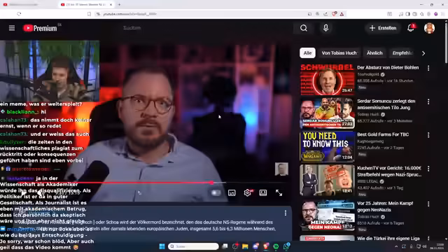 02:14:36Der Streamer reagiert auf ein Video von Top Voll Gold mit dem Titel 'Der Absturz von Dieter Bohlen', das sich mit Dieter Bohlens jüngsten Aktivitäten auseinandersetzt. Es wird thematisiert, wie Bohlen sich in der rechten politischen Szene engagiert und mit dem Goldhändler Dominik Kettner zusammenarbeitet. Kettner wird als jemand beschrieben, der Panik verbreitet, um dann teure 'Kapitalschutzpakete' (Gold- und Silberpakete im Wert von 2.000 bis 100.000 Euro) zu verkaufen. Der Streamer kritisiert diese Strategie scharf, da es viel zu teure Pakete sind und man Gold auch einfach direkt bei einem Goldhändler kaufen kann. Er ist überrascht, dass 'Deutschland sucht den Superstar' und 'Das Supertalent' immer noch existieren und von wem sie noch geschaut werden. Die Aussagen Bohlens zu 'Gutmenschgetue', 'Woke-Scheiß' und der AfD werden ebenfalls beleuchtet. Der Streamer stimmt zu, dass es Probleme in Deutschland gibt, kritisiert aber die Übertreibung und die Panikmache. Die Diskussion über Meinungsfreiheit und die Brandmauer zur AfD wird aufgegriffen, wobei der Streamer betont, dass Meinungsfreiheit nicht bedeutet, dass andere Meinungen nicht kritisiert werden dürfen.