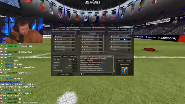 03:41:30Der Stream beginnt mit einem Fußballmatch, bei dem der Streamer zunächst nur kommentieren und nicht spielen wollte, um die Spannung zu erhöhen. Aufgrund von technischen Problemen und der Anwesenheit mehrerer Zuschauer, die mitspielen möchten, wechselt der Plan. Um ein großes Spiel zu ermöglichen, werden Spiele und Steam-Namen ausgetauscht, um die Spieler einzuladen. Der Streamer kauft einige Spielern, darunter Quentin und Zen, das Spiel und richtet einen Spielraum namens 'KuchenTV' mit dem Passwort 'AA' ein, um alle unterzubringen.