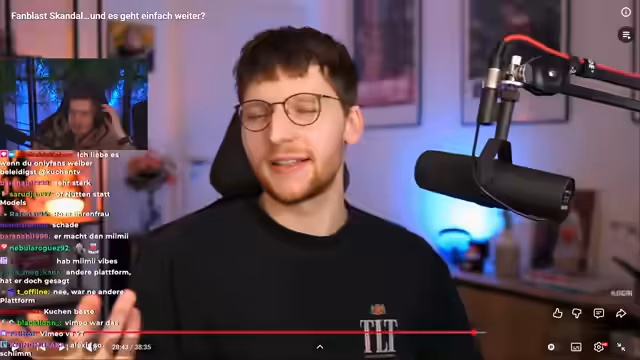00:52:06Im weiteren Verlauf des Streams reagiert der Streamer auf ein Video von Klängern, das sich mit dem Skandal um die Influencer-Plattform FanBlast befasst. Er fasst den Inhalt zusammen: eine Influencerin soll persönliche Chats nicht selbst geführt, sondern durch Dritte erledigt haben, was mutmaßlich einen Betrug darstellt. Er erwähnt, dass auch er und der Creator Rob Bubble unabhängig voneinander über den Skandal berichtet hatten, was zu einer Rangelei führte. Das Video von Klängern hat nun hohe Aufmerksamkeit erzeugt und eine offizielle Stellungnahme von FanBlast zur Folge.