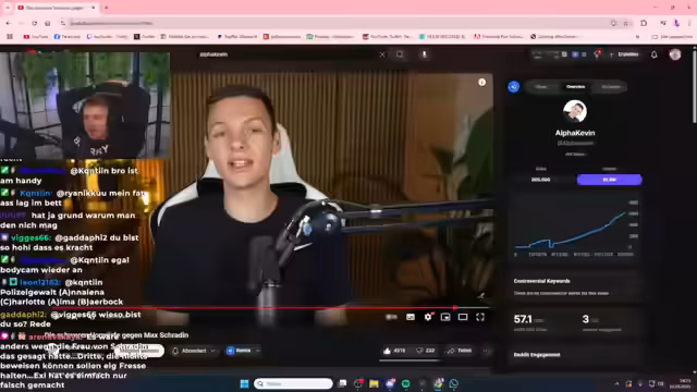 00:37:57Nach Abschluss der ersten Reaktion wechselt der Streamer zu einem aktuellen Thema: den Vorwürfen von Excel95 gegen Max Schradin. Excel behauptet in seinem Stream, Schradin sei ein 'verlogener' Mann, der mit anderen Streamerinnen untreu sei und sie umwerbe, während er eine Frau und Kinder habe. Der Streamer stellt klar, dass diese Vorwürfe ungeprüft und bislang nicht belegt sind und die Person, von der Excel spricht, anonym bleiben möchte. Er hegt grundsätzliche Zweifel an der Art und Weise, wie Excel diese Vorwürfe in die Öffentlichkeit trägt.