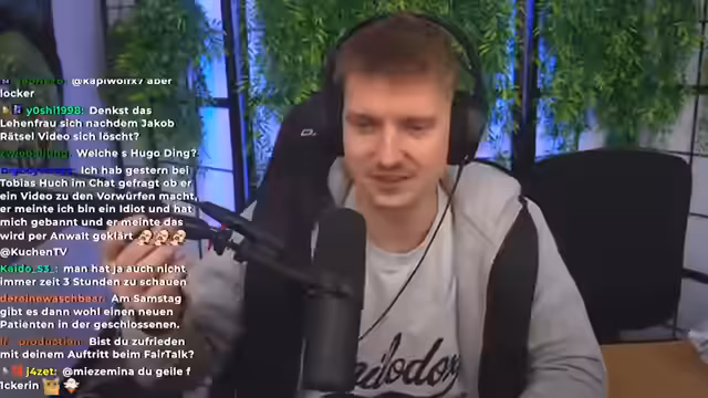 00:13:42Der Streamer plant ein Video über Hugo, in dem er seine Meinung zu ihm äußern möchte, voraussichtlich nächste Woche. Er erwähnt auch, dass Twizy (Ruth) ebenfalls vor Gericht steht, rechnet aber mit einem längeren Prozess. Des Weiteren spricht er über das bevorstehende dreistündige Jakob-Rätsel-Video, dessen erster Teil am Samstag erscheinen soll. Er zeigt sich gespannt auf den Inhalt, da er sich nicht vorstellen kann, wie Jakob so viel Material für drei Stunden zusammentragen konnte, obwohl er selbst viel mit ihm telefoniert hat und über viele Details informiert ist. Er plant, auf Jakobs Video zu reagieren, muss jedoch seinen Terminkalender mit einem Kindergeburtstag und einem Fußballspiel am Sonntag abgleichen. Er überlegt, die Reaction bis spätestens Montag zu machen, da er auch noch ein Cake News-Video und ein Video für Montag vorbereiten muss. Er erwähnt, dass er seine Reaction-Strategie auf seinem Zweitkanal 'KuchenTV Uncut' geändert hat, indem er nur noch eine Reaction pro Tag hochlädt, was zu einer deutlichen Steigerung der Klickzahlen geführt hat und ihm ermöglicht, auf längere Videos zu reagieren.